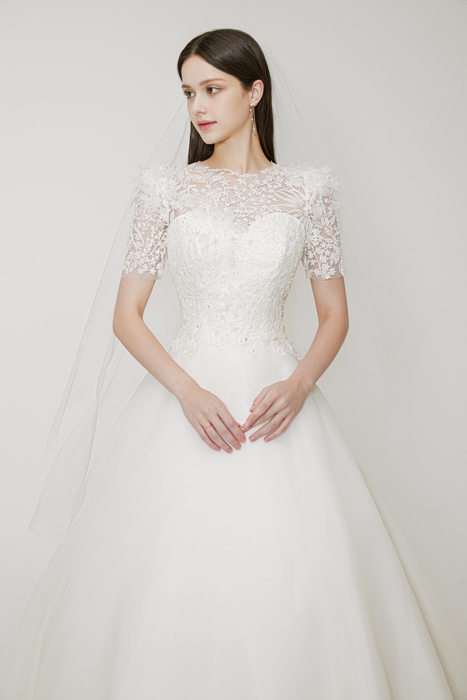 보나킴벨로 웨딩은 세련된 클래식함이 모토입니다.그 어느곳에서도 볼수 없는 고급스러운 모티브와 스타일로 다양한 라인의 드레스를 자체제작합니다. 원단에서부터 쏘잉, 디테일한 장식에 이르기까지 드레스에 심혈을 기울인 작품과도 같은 느낌으로 차별화해 더욱더 세련된 고급스러움을 표방하며,최고의 퀄리티를 자랑하는 드레스입니다